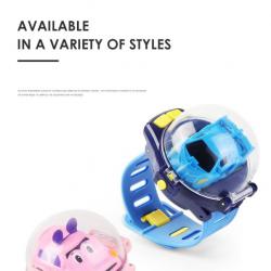 Детски часовник с играчка-количка с управление на количката от часовника / Цвят: черен, син, розов / Материал: пластмаса и мек силикон за часовника; количка – метална сплав; Ръчен детски часовник: отваря се с един бутон и от него излиза количка; Количката се управлява дистанционно от часовника, който има бутони за навигиране; Часовник - 2,4G Wi-Fi дистанционно с обхват до 30 метра; Акумулаторна количка с режим на работа до 1-2 часа; Възможност на количката да се движи напред, назад и да завива; Зареждане: USB кабел;