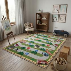 Технически характеристики на Детски килим за игра 120х160см - Тъмнозелен килим с автописта, противоплъзгащ и миещ се Размери: 120 cm × 160 cm (120х160см) Материал лице: мека, водоустойчива и миеща се повърхност Материал гръб: нетъкан текстил, против плъзгане и устойчив на надраскване Функционалност: сгъваем, лек за пренасяне, за целогодишна употреба Подходящ за възраст: от 6 месеца до около 6 години