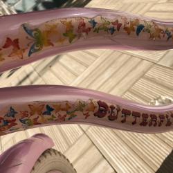 Troy Butterfly 20 цола цвят розов металик степенка предна ръчна спирачка, задна-контра звънец заключващ механизъм-със ключе височина на кормилото-90 см. височина седалка-от 62 до 75 см. тегло-12.5 кг. всичко по колелото е оригинално отлично състояние внос от чужбина
