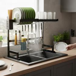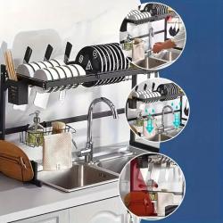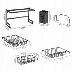 Размери: 65 х 31,5 х 55,5 см (Ш x Д x В); Материал: Метал с прахово покритие; Цвят: Черен; Товароносимост: до 23 кг; Тегло: около 3 кг; Допълнителни елементи: Поставка за дъска за рязане, отделение за прибори; Лесен монтаж и поддръжка – избърсва се с влажна кърпа.