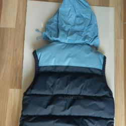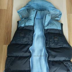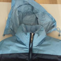 Гръдната обиколка 96-98 см, обиколката на ханша 102 см, дължина пл гърба 64 см, раменете 44 см. Много топъл. Двустранен е. Забележка: отпред има леко отлепване на плата от лепилната основа, но тока не пречи на носенето. Циповете са наред. Качулка е тънка. Доставка Спиди, Еконт или лично.