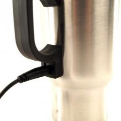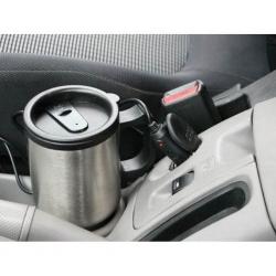 Материал - инокс неръждаема стомана, PP пластмаса; Размери - 8,5 см Х 12,5 см Х 16 см; Обем вместимост - 400 мл; Захранване - 12V, щепсел за запалка на автомобил; Мощност - 20W; Двойна изолация на стените; Температура на нагряване - прибл. 65 ℃; Поддържане на температура - до 3 часа без отопление; Дизайн против подливане и разсипване; Хереметическо затваряне; Стеснена долна част за лесно поставяне в автомобил; Удобна дръжка; Функционален капак с малък отвор за отпиване; Подходяща за кафе, мляко, чай и други топли напитки.