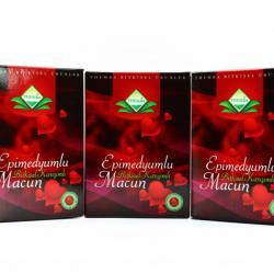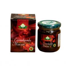 Промоция: 1бр-13лв/2бр-24лв 100% натурален състав – без изкуствени добавки и консерванти; Активна съставка: Икариин – природен екстракт с ценни свойства; Допринася за баланса и тонуса на организма; Подпомага естествените функции, свързани с енергията и издръжливостта; Поддържа доброто кръвообращение и жизненост; Благоприятства общото състояние и комфорта. Епимедиум Маджун е билка, която се е доказала с десетилетия вече като най-мощният натурален сексуален стимулант. В тази насока тя е доказала многократно своята ефективност, дори и при много тежки случаи на здравословни проблеми. Тя съдържа веществото познато като икариин, който е единствения естествен аналог на силденафил – основната съставка на Виагра. Но за разлика от виаграта растителното вещество икариин няма никакви докладвани странични ефекти. Епимедиум Маджун е под формата на паста, с която можете да задоволите партньора си. Изцяло натурален продукт представлява 100% ефективен и най-добрия билков сексуален стимулант. Действието му се изразява в стимулиране на простатната функция, повишаване на ерекцията и подобряване работата на тестисите. Епимедиум повишава половата мощ, повишава либидото и възвръща сексуалното желание. Епимедиум дава резултат при еректилна дисфункция от различен характер – в следствие на възрастови изменения, ежедневен стрес, различни здравословни проблеми. Какво представлява икариин? Икариинът е активното вещество в растението епимедиум. Изцяло натурален продукт, добит по естествен начин, като са запазени всички ценни вещества. Икариинът се съдържа в листата на епимедиума, който от своя страна представлява растение с над 50 разновидности, като само 15 от тях могат да се използват с медицински цели. Вирее в Китай и Източна Азия. Икариинът е вид флавоноид и не може да бъде открит в други билки и растения. Механизмът на действие е сходен с този на виагра. Усвояемостта му от организма се засилва при прием на гладен стомах, тъй като е много чувствителен на ензими. Основни ползи от приема на Епимедиум: Подобрява сексуалния живот при мъже и жени Увеличава сексуалното желание Помага при еректилна дисфункция от различен характер Справя се с ранната еякулацията Повишава потентността по естествен начин Отличен афродизиак Разширява кръвоносните съдове и повишава притока на кръв към пениса Начин на прием: Еднократен прием – 1 кафена лъжица (по-възможност не използвайте метални лъжици – дървена или пластмасова) 30-40 мин преди полов акт. За трайно повишаване на либидото – ½ кафена лъжичка сутрин на гладно с чаша вода + ½ кафена лъжичка вечер преди хранене, с чаша вода. Продуктът не е лекарство, а е на билкова основа, не подценявайте в никакъв случай, обаче, неговия потенциал, който е ненадминат. Приемайте го като помощно средство като не превишавате препоръчителната доза. Не комбинирайте приема на Епимедиум с други инхибитори като виагра, циалис, левитра. Не се препоръчва при хора с високо кръвно налягане, бременни и кърмещи жени. Състав: Епимедиум- 0,79 %, мед от цветя, глюкоза, черница – сироп, полен, соево брашно, рожков, овес, джинджифил, галанга, канелата, американски жен-шен, коприва, сибирски жен-шен, гинко билоба, тиква, аромат на ванилия, пчелно млечице.