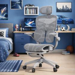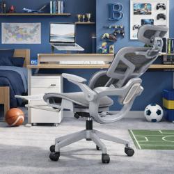 Ергономичен мрежест офис стол с подглавник и поставка за крака, 4D рег