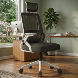 Ергономичен офис стол с лумбална опора Бял, до 250 кг, регулируем