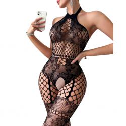 Технически характеристики на Еротично дамско бельо с флорална дантела Материал: Полиестер с еластанни нишки за еластичност и устойчивост. Цвят: Черен, класически и лесен за комбиниране. Размер: Универсален (разтеглив). Подробни ориентировъчни измервания за по-лесен избор: Талия (Т): 60–90 см Ханш (Х): 80–110 см Дължина обща: адаптивна според височина Плътност на тъканта: средна, с открити мрежести зони Ултралекият полиестер гарантира бързо изсъхване и лесна поддръжка. Моделът е проектиран за удобно и сигурно прилепване, което запазва формата си при продължително носене и множество прания.