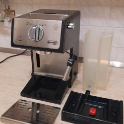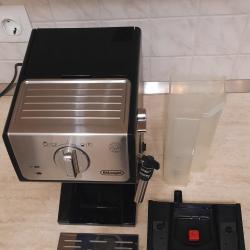 Продавам еспресо кафе машина DeLonghi ECP 35.31. С функция капучино. Подвижен резервоар за чиста вода с вместимост 1.1литър. Най-добрия модел с елементи от полирана неръждаема стомана. Подвижни решетки за лесно почистване. За ремонт или за части. Здрави нагревател, помпа, неръждаем водосъдържжател, ел. ключ, резервоар, капак, легенчета, решетка и т. н. Просто когато работи помпата прокапва от маркуча, всичко останало функционира добре. Малко ползвана, перфектна визия - видно и от снимките. Цена като нова 250 евро. За инфо - по телефона.