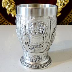 Стара дрезденска порцеланова фигура, статуетка, ваза Лебед, порцелан Дрезден, ръчно изработена, декорирана с релефни рози и блестящо чисто злато 24 карата в стил рококо ривайвъл. Маркирана със златна корона и инициали, датира от 1940 г. Височина 11.5 см., дължина 14 см., ширина 9 см. Перфектна. Налични два броя, цена 86 лв., за брой.