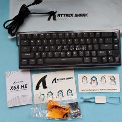Геймърска клавиатура ATTACK SHARK X68 HE 8000Hz Rapid Trigger, 0.01 mm RT точност, кабелна RGB 60% геймърска клавиатура с магнитни превключватели, регулируемо задействане, Snap Tap, за PC/Mac, черна 0.01 мм RT чувствителност, без мъртва зона: С прекъсване само от 0.01 мм, вашият верен спътник изпълнява команди незабавно. В режим на бързо освобождаване, X68 HE се справя без усилие със сложни маневри. Латентност от 0,125 ms, честота на запитване 8000 Hz: X68 HE е магнитна клавиатура с честота на запитване 8000 Hz и честота на сканиране 128 kHz. Латентността ѝ е драстично по-ниска от повечето клавиатури с магнитни превключватели 8000 Hz, осигурявайки революционно 8 пъти по-бърза реакция от традиционните геймърски клавиатури. 60% ултракомпактна QWERTY US подредба: 60% подредбата предлага компактен дизайн, който максимално увеличава пространството на бюрото и подобрява ефективността на писане. Намаленият размер позволява по-бързи движения на мишката и подобрена ергономичност, което я прави идеална за геймъри и професионалисти. Моментално докосване и динамично натискане на клавиши: Моменталното докосване дава приоритет на последното въвеждане между два бутона за по-бързи и по-отзивчиви промени в FPS игрите. Динамичното натискане на клавиши позволява истински аналогов вход, позволявайки ви да извършвате до 4 действия с едно натискане на клавиш, за да създавате безпроблемни комбинации и макроси. Регулируема точка на задействане: цялата кабелна клавиатура X68 U е оборудвана с напълно регулируем магнитен превключвател на Хол, който ви позволява да регулирате точката на задействане на всеки клавиш от 0,1 мм до 3,4 мм на стъпки от 0,01 мм, така че да имате контрол върху бързото натискане на клавишите или ултрапрецизното писане.