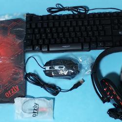 Orzly Keyboard and Mouse Gamer, RX250 PC Gamer Pack, включва: клавиатура и мишка Gamer [с подсветка и кабел], микро слушалки за игри, подложка за мишка, неплъзгаща се - за геймърски компютър, Xbox, PS4 RGB осветление Съвместим с компютър, Xbox и PS4 Включва клавиатура, мишка, слушалки и подложка за мишка Цвят: черен На слушалките липсва единия тампон / дунапрен. Може да се сложи от всякакви слушалки. Съобразено с цената