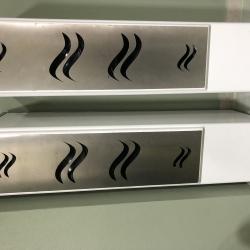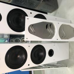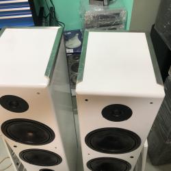 тонколоните са със 9 инчови /22,5см/ нискочестотни говорители Tesla добро състояние-леки козметични ожулвания цвят-бял лак предпазни неръждаеми лайсни по ъглите предни неръждаеми декоративни решетки височина-118 см. широчина-27 см. дълбочина-37.5 см. тегло-над 20 кг. едната отличен звук внос от чужбина лично предаване