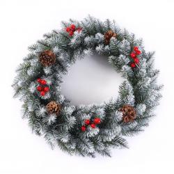 Голям коледен венец, декориран с изкуствени елхови шишарки, 50см. Характеристики: Изкуствени елхови шишарки: Венецът е украсен с изкуствено реалистични елхови шишарки, които излъчват топлина и празничен блясък. Голям размер: С внушителните си 50 см в диаметър, този венец ще бъде незабравимо декоративно украшение, което ще привлече вниманието на всеки. Класически Коледен дизайн: Венецът съчетава традиционните Коледни цветове и елементи, които създават атмосфера на празнична радост. Здрава и издръжлива основа: Венецът е изграден на здрава основа, която го прави идеален за дълготрайна употреба и съхранение за много Коледи напред.