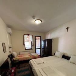 Гостоприемница „Етно Метеора“, с. Борово, Кръстова гора, разполага с леглова база от 20 места и голяма механа за 35 човека. 0877 695 658 – Слави Супер промоцията е тук, драги гости! Поради влизането на България напълно в Еврозоната, ние в Борово обявяваме специална промоция. Вижте народните ни цени по-долу! В „Етно Метеора“ сте добре дошли! Работим на пълна пара и през зимата – топло е и районът предлага страхотни места за разходки. Прекрасна, уютна къща с 6 родопски спални, всяка със собствена баня и автентична родопска атмосфера. Печелим с отношение, народни цени, родопски гозби, чистота и топлина. Всяка стая разполага с климатик, безплатен интернет, натурална козметика с маслина, големи хавлии, тоалетна хартия Milde, 200+ телевизионни канала на LCD Android TV, Wi-Fi, сешоар и ютия. Налична е голяма механа, приятно родопско „плажче“, басейн и шезлонги. Отпред има място за 8–9 автомобила и много удобства. Предлагаме вкусна родопска закуска и вечеря! В с. Борово сме най-гостоприемни, затова за нашите гости има безплатно кафе, чай и минерална вода в стаите. Намираме се в центъра на с. Борово, съвсем близо до Кръстова гора. В района има много праисторически пещери, тракийски светилища и над 40 параклиса, както и 4 екопътеки. В самата къща има малък вграден осветен параклис на етаж 3. Запалете свещ за здраве! Къщата е с най-прекрасната гледка в селото – към параклиси, три църкви и три древни тракийски светилища. Родопската механа е подходяща за кръщенета, именни и рождени дни. Побира между 25 и 35 гости и предлага вкусни родопски гозби на народни цени! На разположение има оборудвана кухня за гостите, които желаят да готвят, барбекю, родопско дворче и маси за раздумки, хапване и напитки. Свободният наем на голямата механа е 5 лв. / 2,56 € на човек. Промоционални цени на ден за групи от 10, 14 и 20 души – цена на човек от 26 лв. / 13 € до 33 лв. / 16 €. Цени за стаи: Двойна – 73 лв. / 31 € Тройна – 89 лв. / 45 € Четворна – 99 лв. / 50 € Настаняване след 14: 00 ч. или когато стаите са готови, при нужда се изчаква. Вижте народните ни цени и се насладете на нашата родопска резиденция! „Етно Метеора“ – от народа, за народа! България завинаги – завинаги EtnoMeteora! 0877 695 658 – Слави