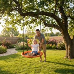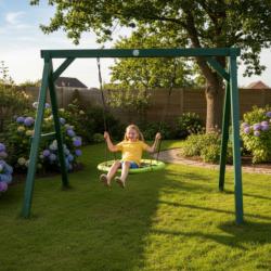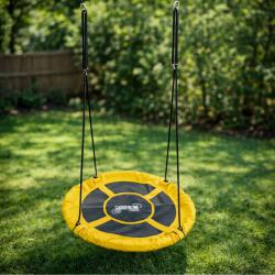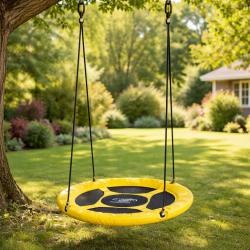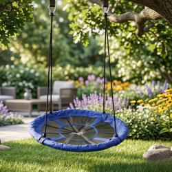 Технически характеристики на Градинска люлка - Щъркелово гнездо - модерен дизайн и издръжлива конструкция Техническите данни гарантират качество и дълготрайност, съобразени със стандартите за градинско оборудване и детски съоръжения: Диаметър: 100 см Цвят: жълт, син, оранжев и зелен Рамка: поцинкована стомана 25 мм × 1.0 мм × 4 Седалка: PP (полипропилен) Втулка: 300 × 600D Oxford Въже: 10 мм PE (полиетилен) Регулируема височина: 1.4 - 1.9 м Максимално натоварване: 150 кг