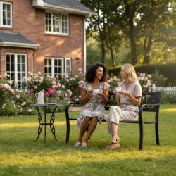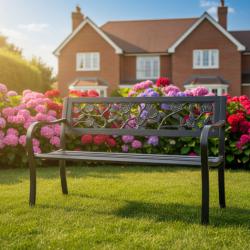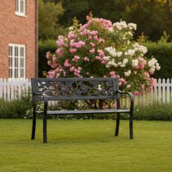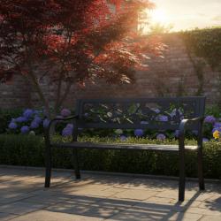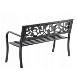 Технически характеристики на Градинска пейка - стил и удобство в градината Техническите параметри са ясни и практични за потребителя: Дължина: 125 см Дълбочина: 53 см Височина: 77 см Материал: стомана Размери на профила: 20 x 40 x 0,9 мм Цвят: черен Конструкция: масивна, болтова Мотив на облегалката: рози
