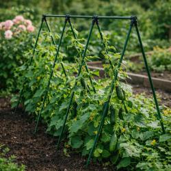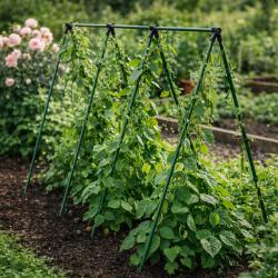 Технически характеристики на Градинска рамка тип пергола - издръжлива и устойчива - 4 броя Техническите параметри са ясно дефинирани, за да знаете точно какво получавате: Дължина на стълбовете: 1,8 м Размери на перголата: 1,8 м x 3,2 м Диаметър на стълбовете: 16 мм Материал: метал с пластмасово покритие Цвят: зелен Устойчивост: създадена да устои на атмосферни влияния и влага