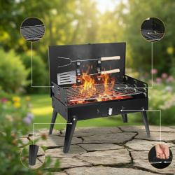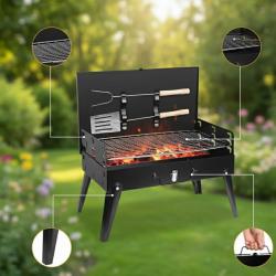 Тип: Сгъваема преносима градинска скара; Цвят: Черен; Размери в разгънато състояние: 44 x 27 x 47 см; Конструкция: Метална, сгъваема; Преносимост: Куфарче с дръжка; Важно: Снимката е с информативен характер и може да съдържа аксесоари, които не са включени в стандартния пакет; някои от спецификациите или цените могат да бъдат променени от производителя без предизвестие или могат да съдържат експлоатационни грешки.