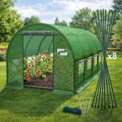 Ключови спецификации за бърза справка: Размери: 6 м (дължина) × 3 м (ширина) × 2 м (височина) Сегменти: 4 Прозорци: 8 бр. с комарници, закрепени с велкро Врати: 1 чифт, ролетни, с ключалка (125 см × 180 см) Рамка: поцинкована стомана, дебелина на тръбата 0.65 мм, диаметър 25 мм Фолио: PE с PP мрежа, 140 г/м², UV-4 Включено: монтажен комплект, пълен комплект анкери, 8 броя стълбове 11 × 120 см, допълнителни горни подсилващи тръби