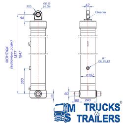 Брой цилиндри: 5 Товароносимост: 40т Общ ход: 7550 мм Тегло на цилиндъра: 292 кг Работно налягане: 170 bar Максимално налягане: 190 bar Каталожен №: 43175575503 Място на монтаж - фронтално За монтирането на този Хидравличен цилиндър са необходими допълнителни елементи - горна стойка (47000026) и долен комплект стойки (47000017), които се заплащат отделно.