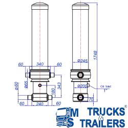 Брой цилиндри: 4 Товароносимост: 40т Общ ход: 5640 мм Тегло на цилиндъра: 340 кг Работно налягане: 175 bar Максимално налягане: 190 bar Каталожен №: 17545640H Място на монтаж - фронтално Продава се в комплект с горни и долни конзоли за монтаж Наличност: На склад Произход: Турция Гаранция: 6 месеца Състояние: Ново