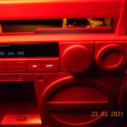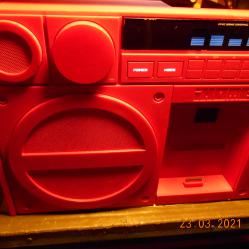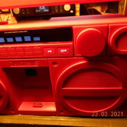 Радиоапарата изглежда почти отлично НАПЪЛНО РЕСТАВРИРАН /не ремонтиран/ ОТ ГУМИРАНОТО ПОКРИТИЕ /няма да обеснявам какво представлява/Напълно премахнато за 4 дни /15 евро/ в Германия Радиото свири страхотно - радио - вход и айфон/не е пробвано/Цифрово увеличение на басите + 5 тон коректора