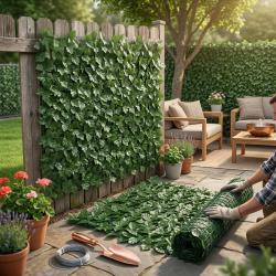 Размери: 0,5 м × 5 м Цвят: зелен Материал: пластмаса, UV-устойчива обработка Комбинируемо: да, лесно съединяване на няколко ролки Приложение: балкон, тераса, градина, ограда, интериор на дом или офис Функции: уединение, декоративно покритие, сянка Монтаж: с кабелни връзки, тел или скоби; може да се подрязва според нуждите