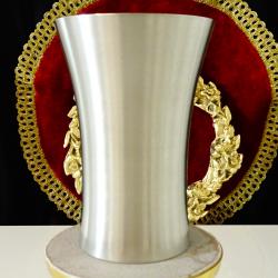 Стара калаена чаша за вино, бира, майсторска ръчна изработка от 95% калай и 5% сребро, маркирана с печат на немската леярна Röders Tec, основана в края на 18-ти век. Височина 11 см., диаметър 8 см., тегло на всяка 250 гр. Вместимост 200 мл. Налични 2 броя, цена 29 лв. /14.83 €, за брой.