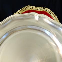 Стара калаена чиния за стена, пано, майсторска ръчна изработка от 95% калай и 5% сребро, маркирана с релефен печат на производителя. Предназначена за гравиране на персонализиран текст, снимка и др., като незабравим подарък за специален повод – калаена сватба, рожден ден, юбилей и др. Диаметър 23.5 см., височина 2 см., тегло 650 гр.