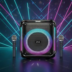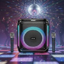 Материал / корпус: метал и устойчива пластмаса; Размери / тегло: приблизително 28,5 × 28,8 × 32,9 см; Мощност / батерия: 30W RMS, вградена литиево-йонна батерия 7.4V / 2400 mAh (включена в уреда, не са нужни допълнителни батерии); Свързване / съвместимост: Bluetooth, USB, SD карта, FM радио, дистанционно управление; Допълнителни функции: караоке режим, 2 включени микрофона, LED светлинни ефекти, включен USB кабел за зареждане.