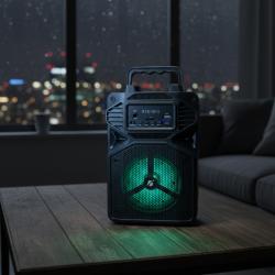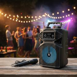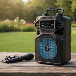 Технически характеристики на Караоке тонколона с Bluetooth KTS-1513 4“ и микрофон Кратко и ясно за важните технически параметри, които да имате предвид при покупка: Говорител: 1 бр. 4 inch; Мощност: 5W; Батерия: Вградена акумулаторна 3.7V/500mAh; Входове/слотове: Bluetooth, USB, TF/SD/MMC, AUX, микрофон 6.3mm; Функции: радио, светлинни ефекти, панел за управление; Размери: 15.4 x 12.2 x 23.3 см; Подходящо за: партита, празненства, презентации и места без електричество.
