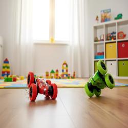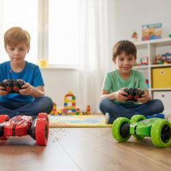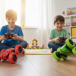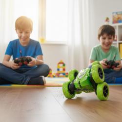 Ако детето ти бързо губи интерес към играчките, този каскаден радиоуправляем автомобил ще го задържи с часове! Създаден за динамични игри и ефектни акробатики, той се движи двустранно, върти се на 360° и преодолява всякакви повърхности. Здравите гуми и удароустойчивият корпус гарантират издръжливост, а ярките LED светлини правят всяко каране истинско шоу. Колата се зарежда лесно чрез включения USB кабел и е готова за нови приключения навън или у дома. Размери: 16 × 16.5 × 7 см Функции: 360° въртене, двустранно каране, LED светлини Захранване: Презареждаема батерия (вкл.) Цвят: Червен / Зелен