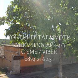 кодг 63121. Едноетажна къща 85м2 - самата къща 60м2, с допълнителна стоп. пристройка 25м2 с двор 820м2 и два лицеви масивни гаража с площ: 25 и20м2. С партиди за ток и вода, къщата с лек ремонт е готова за ползване, имотът се намира на централна асфалтирана улица с целегодишен достъп.