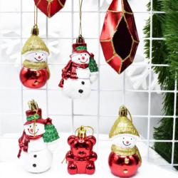 Технически характеристики Материали: пластмаса, метални елементи (закачалки); Размери: 2 × снежен човек – 7,5 см; 2 × мече – 6 см; 2 × бял снежен човек – 8 см; 2 × декоративни висулки – 13 см; Цветове: червено, бяло, златно; Безопасност: леки, без остри ръбове, подходящи за семейства с деца; Допълнителни елементи: златни връзки за окачване; Подходящ за деца: да, под наблюдение; Опаковка: кутия, подходяща за подаряване.