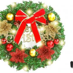 Коледен венец Mеrry Christmas с панделка, Диаметър: 30см. ? "Merry Christmas" послание: Венецът предлага красиво изписаното "Merry Christmas" послание, което нежно приветства всеки, който стъпва пред вашия дом. Този великолепен акцент подчертава духа на предстоящите празници.