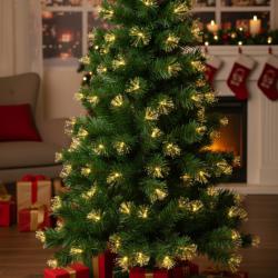 Тази изкуствена коледна елха с височина 150 см е идеалното решение за създаване на празнична атмосфера в малки и средни помещения. Вградените LED светодиоди придават прекрасен цветен блясък и допълват празничния дух. Лесна за монтаж и съхранение, елхата е изработена от висококачествени PVC материали, които осигуряват дълготрайност и устойчивост. Без нужда от поддръжка, тя няма да оставя игли и е перфектен избор за вашето пространство.