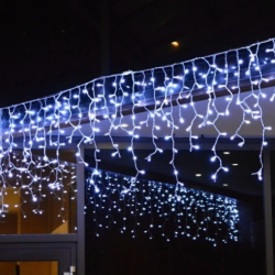 Коледна LED светлинна завеса, 100% водо и влаго защитена, Дължина: 3метра, Висулки: 60см, бял кабел, IP54