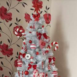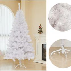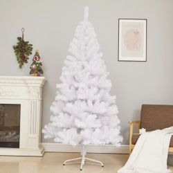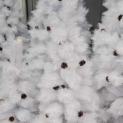Коледна Снежно бяла или зелена елха с шишарки пласмасова стойка топ