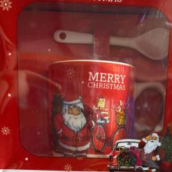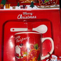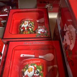 Тип продукт: Порцеланов сервиз; Коледна порцеланова чаша за чай или кафе с порцеланова лъжичка е перфектният избор за уютните празнични сутрини. Чашата е декорирана с апликация на Дядо Коледа, като има четири различни варианта на дизайна: Вариант 1: Дядо Коледа и шейната - различни модели, праща се според наличността; Вариант 2: Дядо Коледа и мечето/колата - праща се според наличността; Вариант 3: Дядо Коледа с подаръци; Вариант 4: Дядо Коледа с колело; Размерите на чашата са 9.5 х 7 х 7.3 см, изработена от качествен порцелан. Чашата и лъжичката се предлагат в красива, цветна кутия, идеална за подарък или лична употреба през празничния сезон.