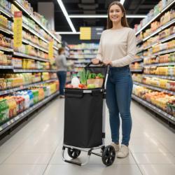 Количка за пазаруване в черен цвят 40 л, водоустойчива, лека и удобн