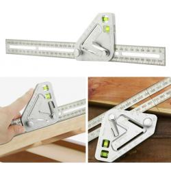 Многофункционалният измервателен инструмент е подходящ за работа с дърво, за прецизно измерване в къщи, офиса, на вилата. Той е вашият неизменен помощник. Уредът е изработен от неръждаема стомана и пластмаса. Тегло 160 г. Уредът е олекотен, което го прави изключително подходящ за работа навсякъде.
