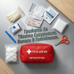 Размери: компактни (приблизително 20 x 12 x 6 см) — практичен дизайн за съхранение във всякакви автомобили. Материал: синтетичен плат с водоотблъскващо покритие и подсилени шевове. Закопчаване: здрав двоен цип за бърз достъп и сигурност на съдържанието. Цвят: ярко червен с бели символи за видимост при спешност. Комплектованост: набор от основни превързочни материали, ножички, пинсета и ръкавици, съобразени с нуждите на шофьора.