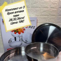Продава се комплект от 3 броя кръгли тави за печене – практично решение за всяка кухня. Подходящи за приготвяне на баници, кексове, печива, месо и други вкусни ястия.