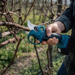 Чусен инструмент за оформяне и почиствани на дървета, храсти и други в градината. Комплекта включва 2 батерии, работи до 3 часа с едно зареждане, капацитет на рязане 40мм и максимално отваряне до 75мм. Този инструмент разполага със специално оформени остриета за по-ниско съпротивление с висока скорост на рязане. Изпраща се с резервни остриета за рязане и комплект инструменти за поддръжка.