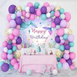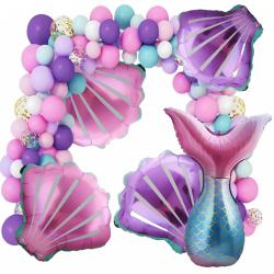 Пълен комплект от 97 елемента – всичко необходимо, за да създадете впечатляваща декорация за всяко събитие. Русалка мотив – фолио балони във формата на опашката на русалка и черупки създават уникална, приказна атмосфера, която ще очарова всички. Разнообразие от цветове и размери – пастелни, лилави, зелени и прозрачни балони с конфети за ярка и ефектна декорация. Перфектен фон за снимки – с този комплект можете да създадете красив фон за всяка фотосесия или специално събитие. Лесно приложение – включва всичко необходимо за създаване на венец с балони, без да се изискват специални умения. Дизайн: Комплектът съдържа балони с размери от 10 инча до 31,5 инча (80 см). Включва балони с конфети и фолио балони във формата на черупки и русалка опашка, които ще придадат приказен вид на всяка стая или външно пространство. Лентата за гирлянда и лепилните точки улесняват създаването на прекрасна декорация, която може да бъде монтирана на стена, около маса или в пространство за фотосесии. Технически характеристики: Размери на балоните: от 5 инча до 31,5 инча; Материали: Латексови балони, фолио балони; Цветове: Лилав, розов, зелен, прозрачен с конфети; Приложение: Рожден ден на деца и възрастни, бебешки душ и кръщене, ергенски партита и сватби, декорация за фотосесии и събития, празнична декорация за зали, къщи и градини; Важно: Снимката е с информативен характер и може да съдържа аксесоари, които не са включени в стандартния пакет; някои от спецификациите или цените могат да бъдат променени от производителя без предизвестие или могат да съдържат експлоатационни грешки. Какво ще намерите в опаковката: 1 x русалка опашка балон - 31,5" (80 см); 2 x балон мида розов - 21,6" (55 см); 2 x балон мида лилав - 21,6" (55 см); 15 x лилави балони - 10"; 10 x розови балони - 10"; 15 x зелени балони - 10"; 5 x прозрачни балони с конфети - 5"; 1 x лента за гирлянд - 5 м; 100 x точки лепило за балони; Транспортна опаковка.