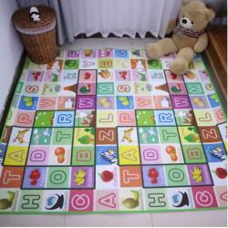 Двулицево детско килимче: Размери: 120 см х 180 см Дебелина: 0.5 см Материал: Полиуретанова пяна / EVA (в зависимост от модела) Цвят и мотиви: многоцветни, варират според наличностите Тегло: 1–2 кг Форма: Правоъгълна Непромокаемо и неплъзгащо покритие Материал на повърхността: Полиетилен Водоустойчиво, лесно за почистване Леко, сгъваемо, преносимо Подходящо за закрито и открито Осигурява топлоизолация и мекота Магическа водна подложка Aqua: Материал: Висококачествен найлон с EVA елементи Размери: 60×80 см и 80×100 см Подходяща възраст: 2+ години Тип употреба: многократна Време за изсъхване: около 10 минути Без мастило, без бои – използва се само вода Образователни мотиви: динозаври, коледа, космос, животни и др. Самопочистваща при изсъхване Безопасна и нетоксична