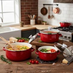 Капаци:  стъклени с алуминиев кант и удобна дръжка, задържат топлината и позволяват видимост по време на готвене.
