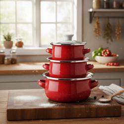Материал:  метал с емайлово покритие (външно и частично вътрешно), устойчиво на надраскване при нормална употреба.