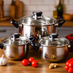 Комплект: 6 части (3 съда + 3 капака);