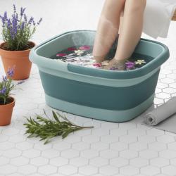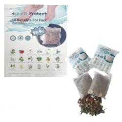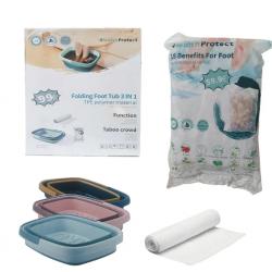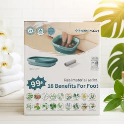 Комплектът включва: сгъваем леген за крака 3-в-1 (TPE полимер); 20 билкови сашета × 30 г (18 различни билки); кърпа за подсушаване (подарък); Материал на легена: издръжлив TPE; стабилна, неслъзгаща основа; дръжка за пренасяне; Употреба – превод от опаковката: Foot bath 1: Постави 1 саше в легена. Залей с 1–2 кг (≈1–2 л) вряла вода, разбъркай и остави 5–10 минути. Долей топла/хладка вода до комфортна температура и накисни краката 15–20 минути; Foot bath 2: Вари 1 саше ~5 минути в съд, изсипи в легена и регулирай температурата; Вана за тяло: 3 сашета, вари ~5 минути, изсипи във ваната и долей вода до желаната температура; Противопоказания: не се препоръчва за бременни и за хора с алергия към пелин/ароматни масла. При кожно раздразнение прекрати употребата.