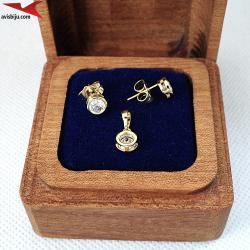 http: //www. avisbiju. com/ 264185 Цена: €7.00 / 13.69 лв. Комплект със златно покритие: • Продукт: комплект висулка и обеци • Състояние: ново • Материал: екологична мед 14К позлатено • Камъни: Synthetic CZ • Размери: - обеци– 7*7 mm • - висулка – 15*7 mm • Грамаж: - обеци – 1.8 • - висулка – 0.8